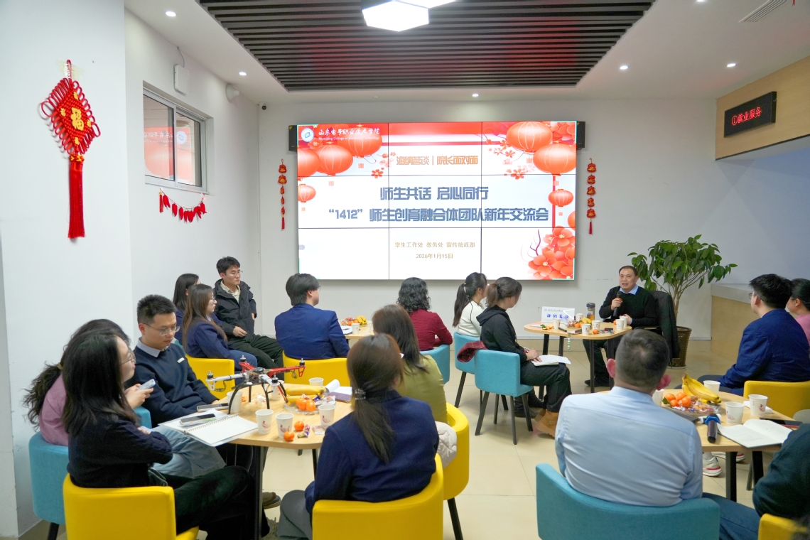 1月15日下午,學(xué)校在“一站式”學(xué)生服務(wù)大廳舉辦“海納茗談”系列之“師生共話 啟心同行”新年交流會(huì)。院長(zhǎng)張建臣,黨委委員、宣傳統(tǒng)戰(zhàn)部部長(zhǎng)聶鶯,學(xué)生工作處、教務(wù)處等相關(guān)部門負(fù)責(zé)人,各系學(xué)工干部及“1412”團(tuán)隊(duì)師生代表共同參加,圍繞“1412”師生創(chuàng)育融合體階段成果與育人實(shí)效展開交流。