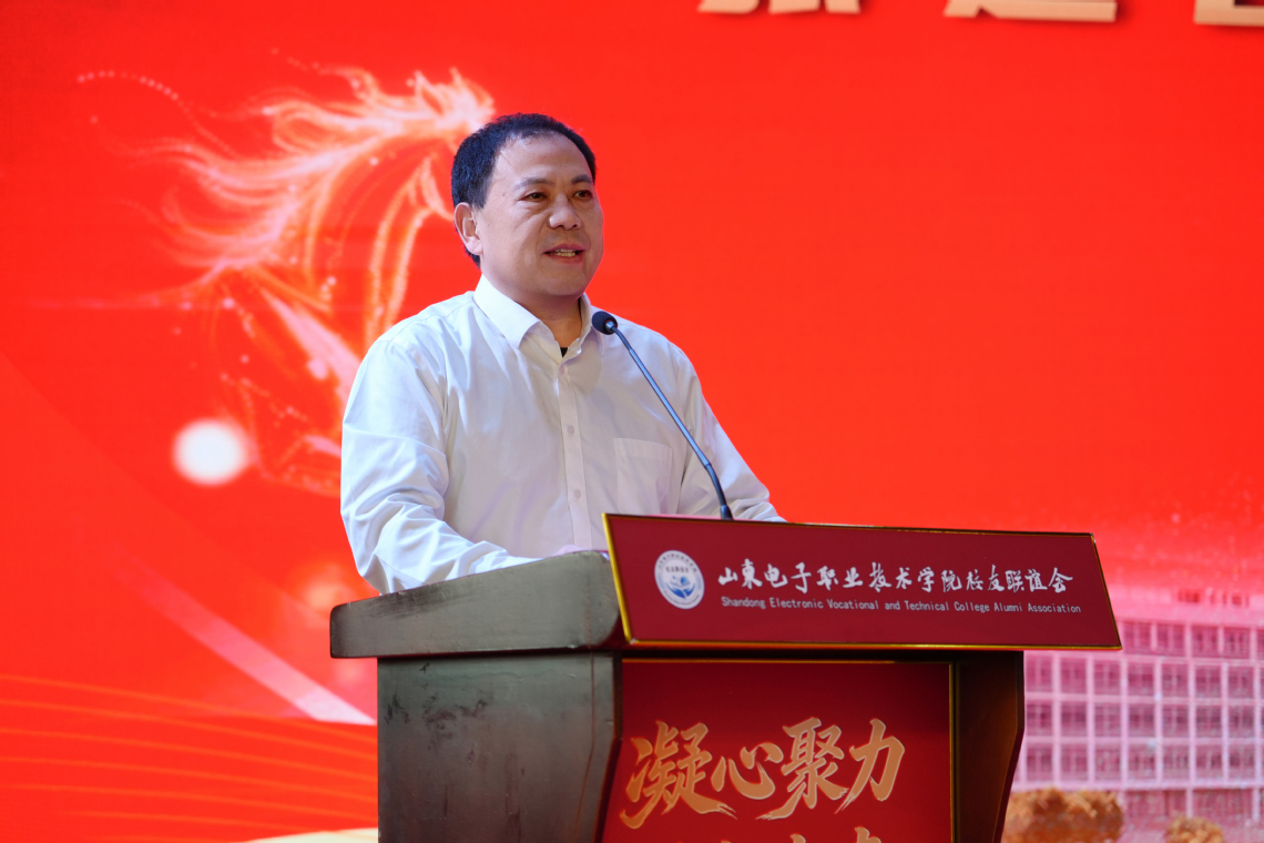 院長張建臣代表學(xué)校對年會的召開表示熱烈祝賀,向參與籌備工作的校友及相關(guān)人士致以誠摯感謝,并向全體校友送上新春的美好祝福。他指出,2025年學(xué)校深入貫徹“126”工作思路,成功入選省高水平高職學(xué)校立項(xiàng)建設(shè)單位,在人才培養(yǎng)、信創(chuàng)引領(lǐng)、專業(yè)群建設(shè)、產(chǎn)教融合、國際交流等方面取得豐碩成果,這些成績的取得,離不開全體師生員工的實(shí)干拼搏,也離不開廣大校友的傾力支持。校友是母校最珍貴的財(cái)富,校友聯(lián)誼會積極搭建平臺、凝聚資源、開展活動,為學(xué)校高質(zhì)量發(fā)展注入了持續(xù)動力。眾多校友在各行各業(yè)奮發(fā)有為,以出色成就踐行山電精神、擦亮母校名片。展望2026年,學(xué)校將繼續(xù)立足工信辦學(xué)特色,緊緊圍繞“雙高”建設(shè)和職教本科申報(bào)等重點(diǎn)任務(wù),深化內(nèi)涵建設(shè),努力建成特色鮮明的高水平電子信息類職業(yè)院校。希望校友聯(lián)誼會繼續(xù)發(fā)揮橋梁紐帶作用,進(jìn)一步凝聚校友力量、創(chuàng)新服務(wù)形式、深化協(xié)同聯(lián)動,共同譜寫母校與校友攜手并進(jìn)、共贏發(fā)展的新篇章。