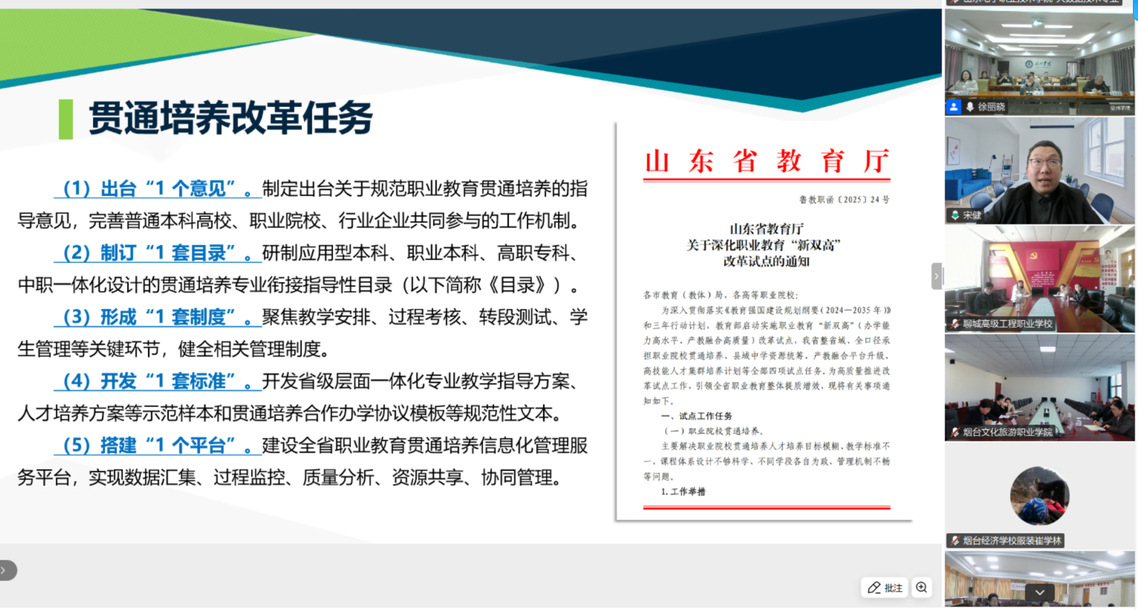1月22日,德州學院組織召開對口貫通分段培養(yǎng)2025年線上工作會議,總結(jié)全年培養(yǎng)工作成效,部署下一階段重點任務。副院長王毅東、教務處負責人張欣、計算機與軟件工程系負責人王新新及部分骨干教師代表參會。