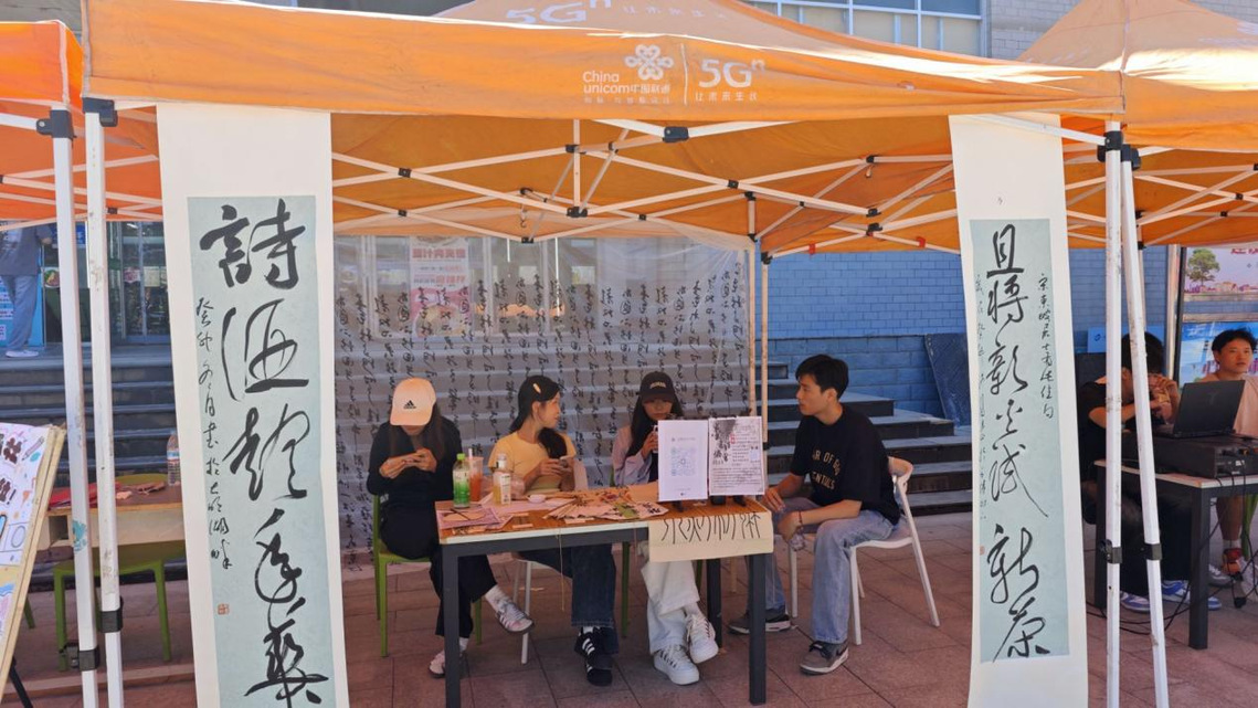 活動(dòng)現(xiàn)場(chǎng),學(xué)校各社團(tuán)展位有序排列,現(xiàn)場(chǎng)人頭攢動(dòng),宣傳聲、音樂(lè)聲與歡聲笑語(yǔ)交融,創(chuàng)意海報(bào)與特色展品共同營(yíng)造出充滿活力與熱情的校園文化氛圍,成為新學(xué)期一道亮麗的風(fēng)景線。大學(xué)生藝術(shù)團(tuán)e青年合唱隊(duì)帶來(lái)彈唱表演,吉他旋律與清澈歌聲吸引了眾多學(xué)生駐足欣賞;金話筒主持隊(duì)模擬晚會(huì)報(bào)幕,以清晰的表達(dá)和沉穩(wěn)的臺(tái)風(fēng)展現(xiàn)了良好的語(yǔ)言表達(dá)能力與舞臺(tái)風(fēng)采;禮儀隊(duì)成員身著統(tǒng)一禮服,儀態(tài)優(yōu)雅,展示了專業(yè)的禮儀風(fēng)貌;墨香書(shū)法隊(duì)即席揮毫,墨香馥郁,引來(lái)眾多同學(xué)圍觀;山電之聲廣播站展出專業(yè)播音設(shè)備,并熱情介紹日常節(jié)目制作流程,分享播音背后的故事;國(guó)旗護(hù)衛(wèi)隊(duì)隊(duì)員制服整齊、身姿挺拔,莊重帥氣的形象吸引了大量學(xué)生咨詢報(bào)名。各社團(tuán)以多元的形式充分展示了自身的特色與魅力。